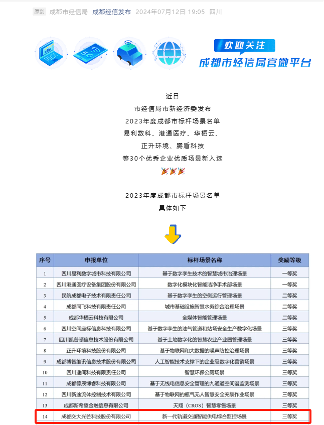 ¿ËÈÕ£¬£¬£¬£¬£¬£¬£¬£¬³É¶¼»á¾ÐžÖÊÐо¼ÃίÐû²¼2023Äê¶È³É¶¼»á±ê¸Ë³¡¾°Ãûµ¥£¬£¬£¬£¬£¬£¬£¬£¬½»´ó¹âÏßÐÂÒ»´ú¹ìµÀ½»Í¨ÖÇÄܹ©µç×ÛºÏ¼à¿Ø³¡¾°ÈÙ»ñÈýµÈ½±¡£¡£¡£¡£¡£